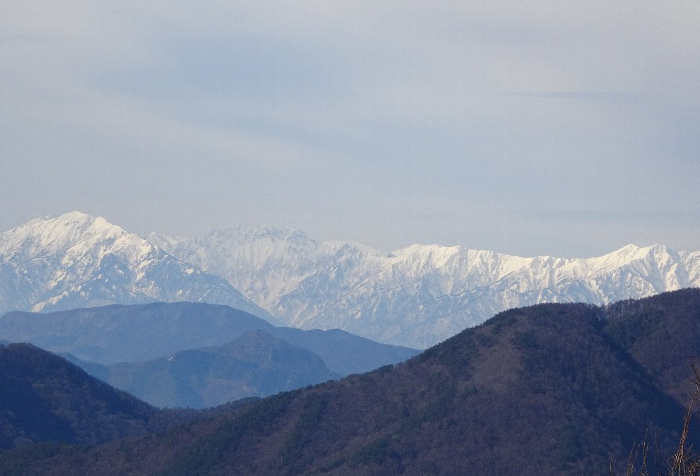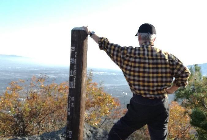 退院してから四ヶ月。まだ足首の痛みがあったが、杖でそこそこ動けるようになってきていたので、晴れている日などは簡単な山でいいから登りたいという欲求がわいてきていた。この日も天気が良くて、とうとう我慢できなくて登に行ってしまった。岩場付きの直登コースは避けて林道を登り、直登路と接続するところまで、と思っていったが、やはり我慢できなくて頂上まで登ってしまった。久しぶりの見晴らす景色が気持ちよかった。下りも林道コースを下りた。