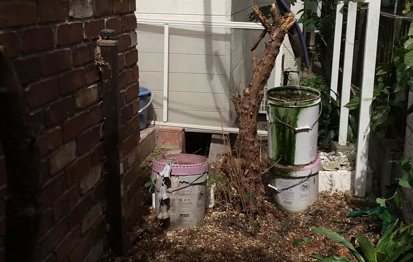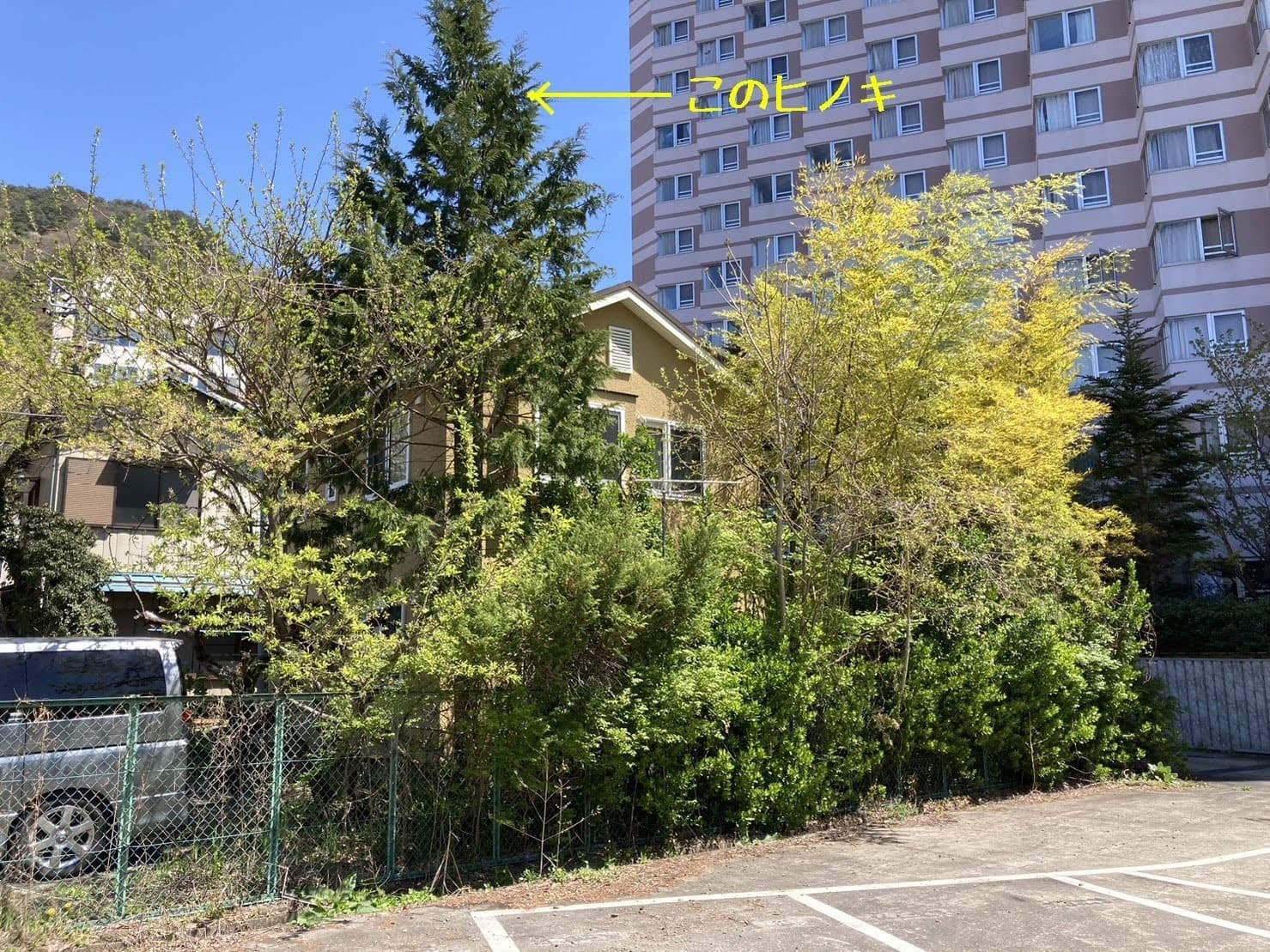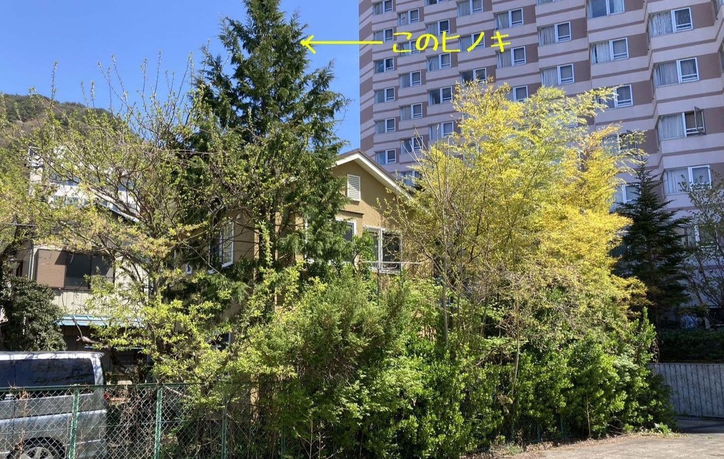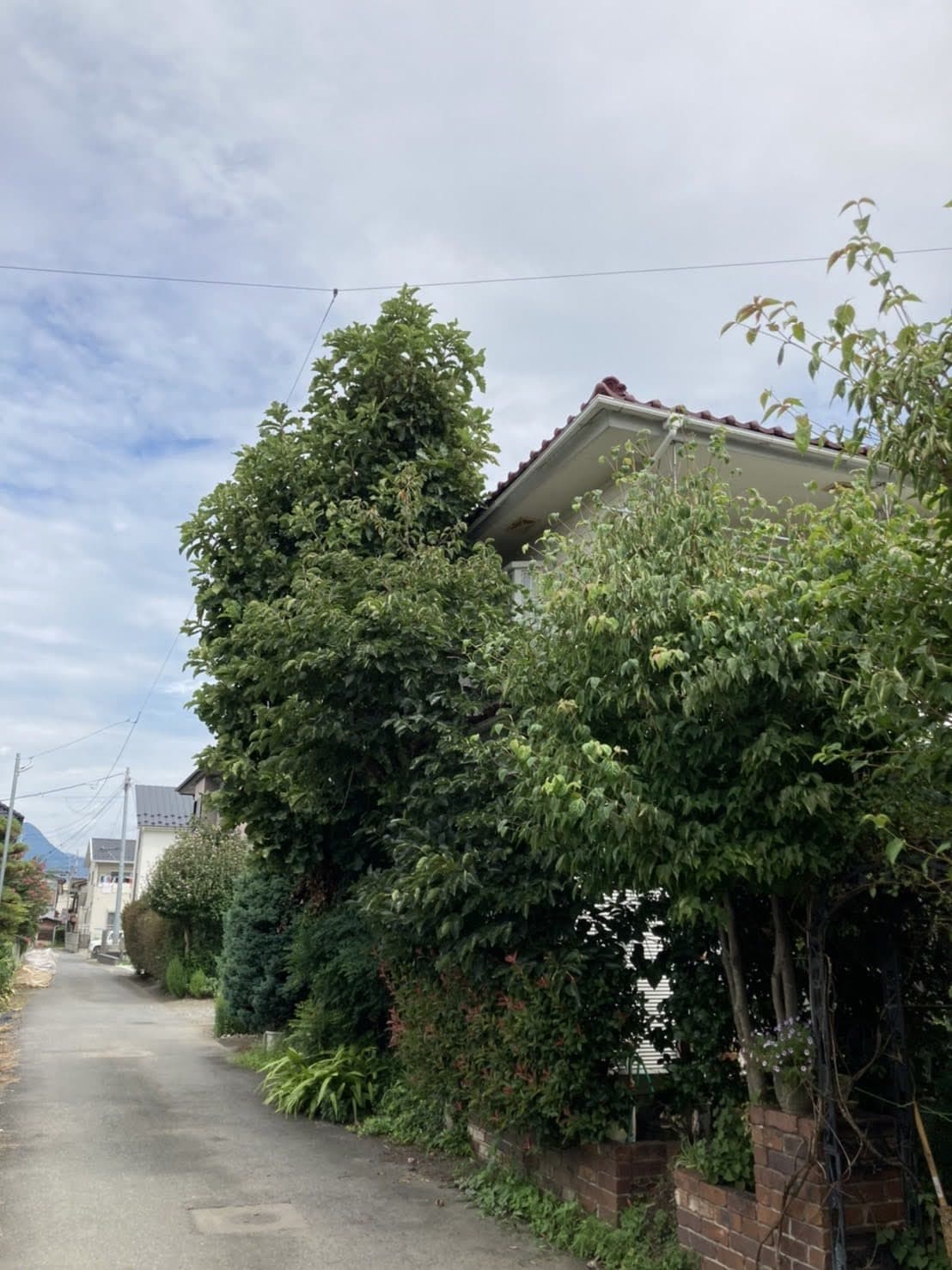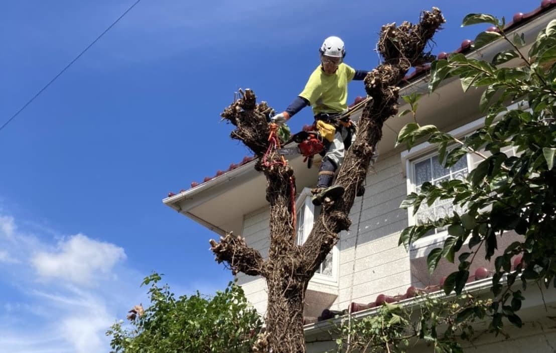 建物のすぐ脇に生えている木の伐採。高さはないので楽だった。なかなかオシャレな庭だった。木は杉と柏。