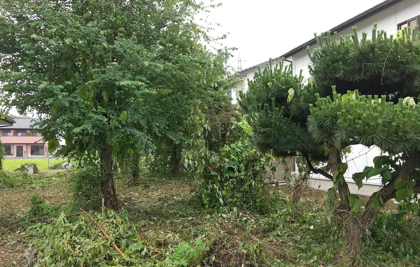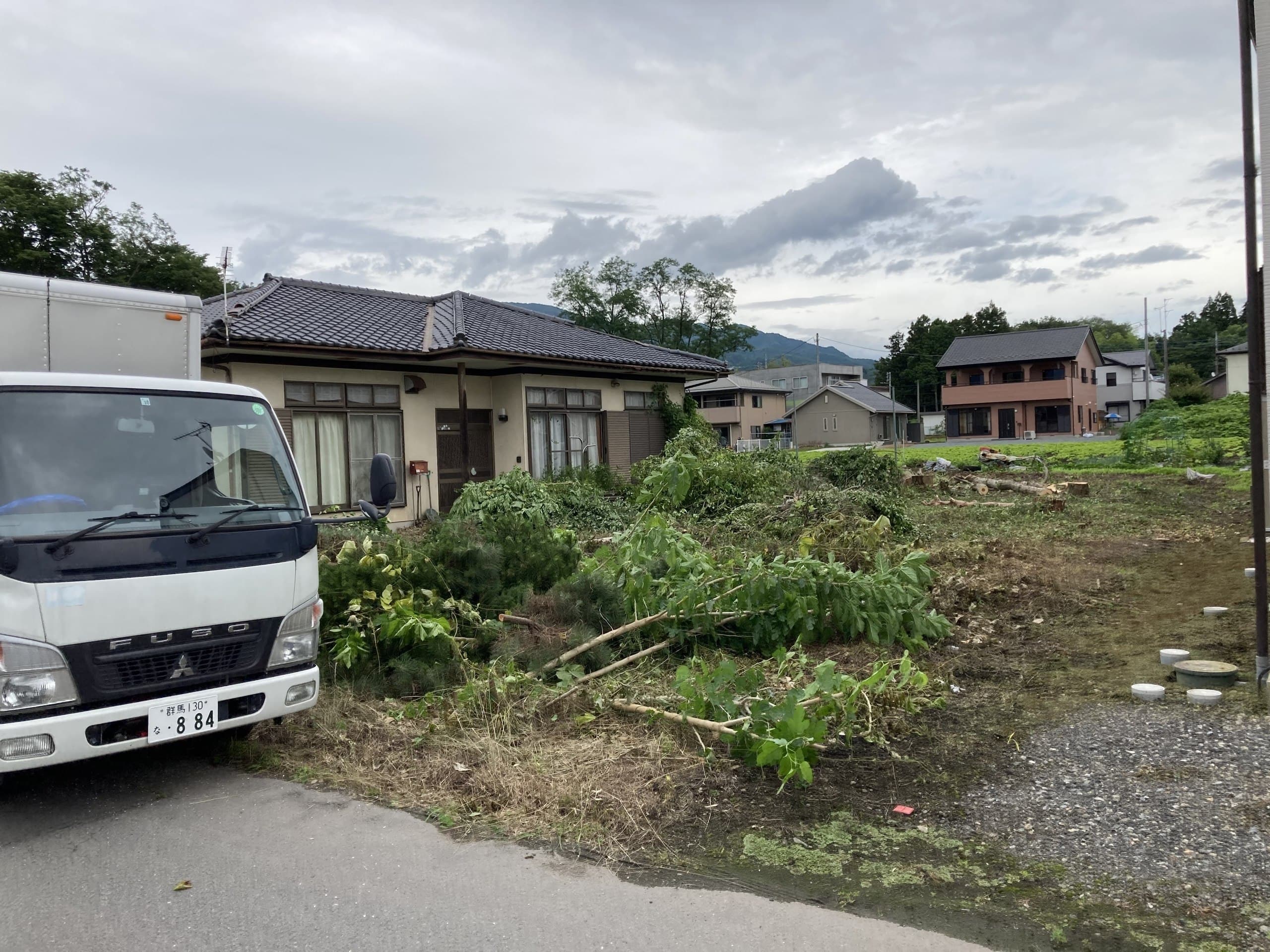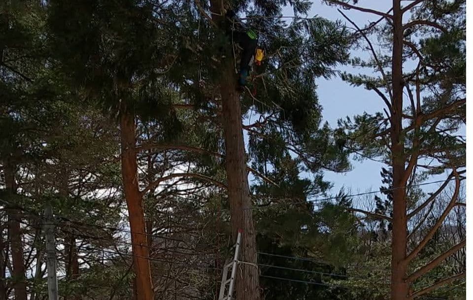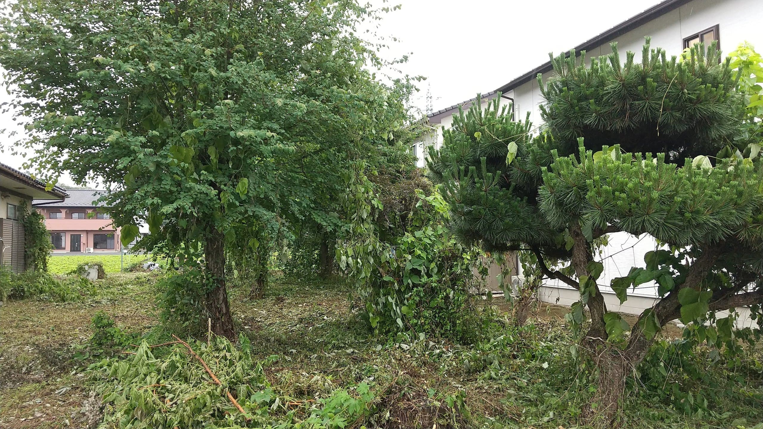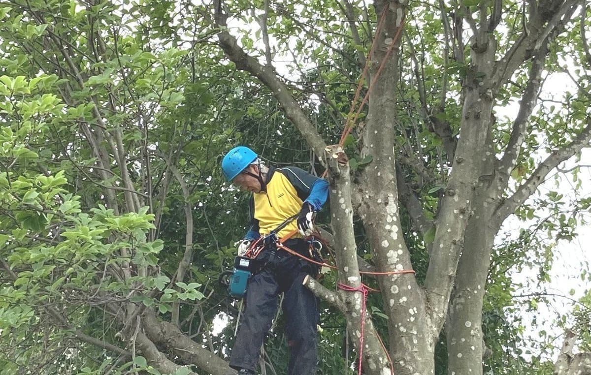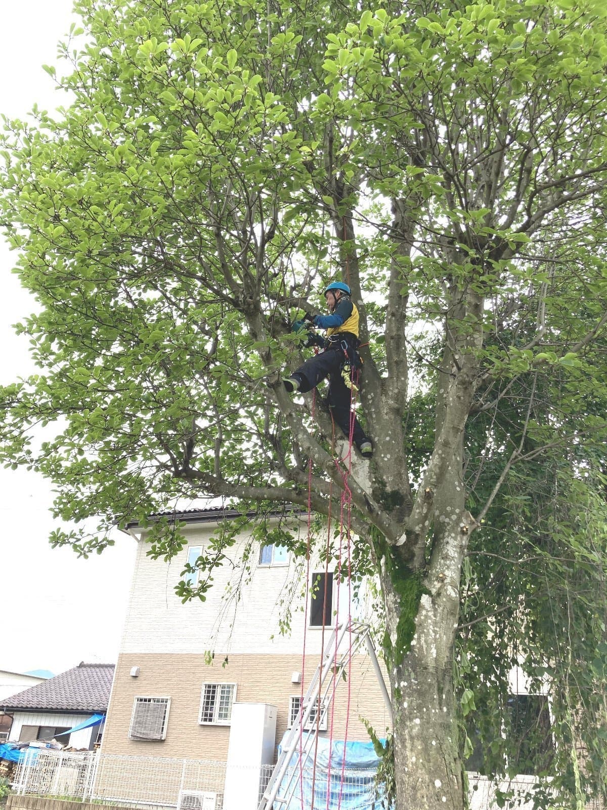 初めての手伝いの特殊伐採。空き家の庭に生えてる木の伐採。3~4mまで刻めば倒せるスペースがあったので、枝を落とすのも主幹を倒すのも楽だった。