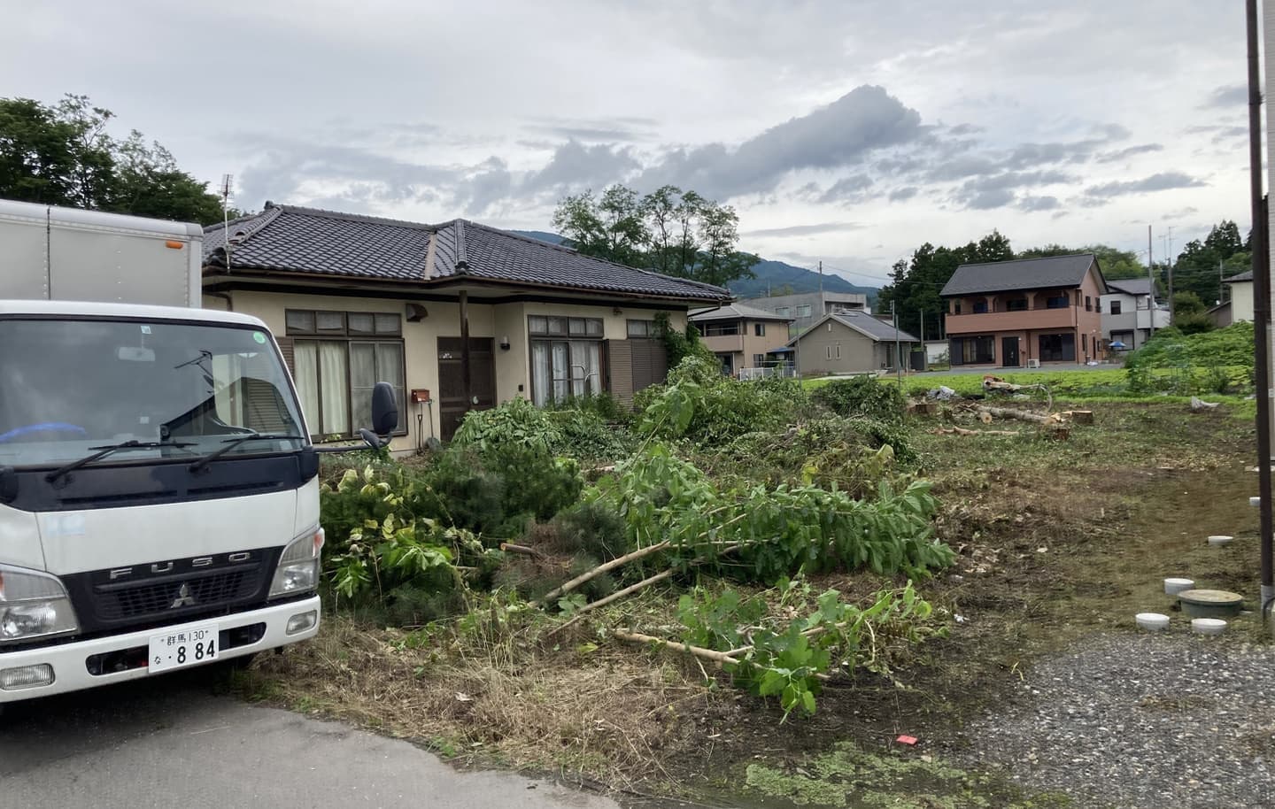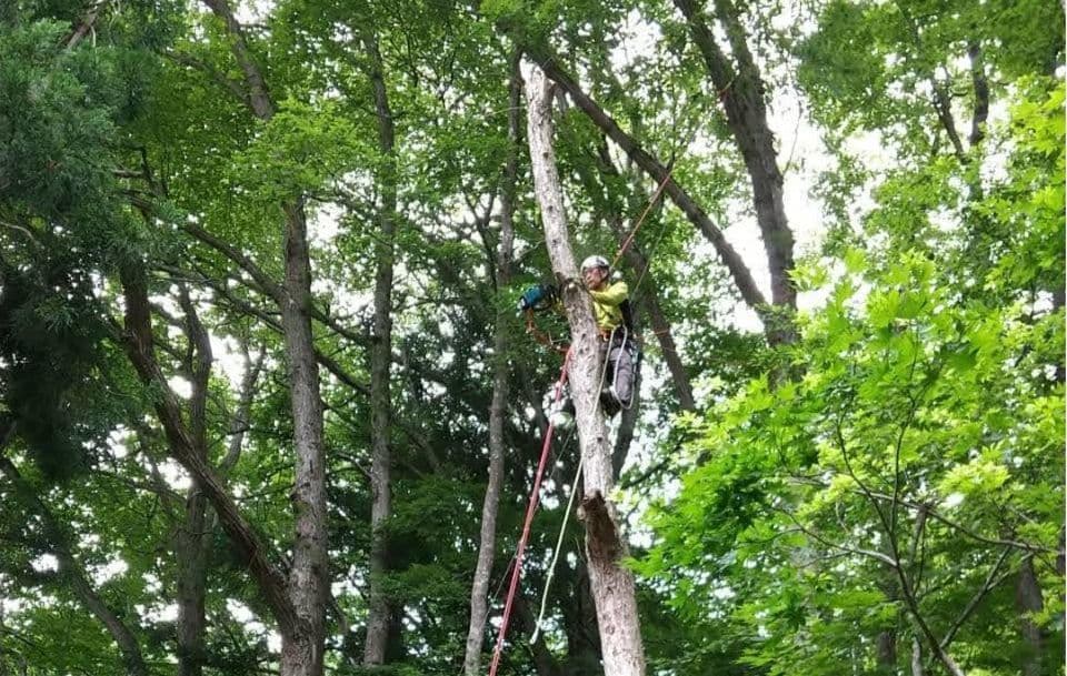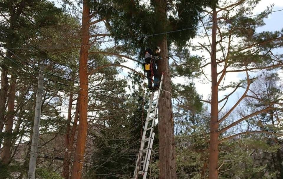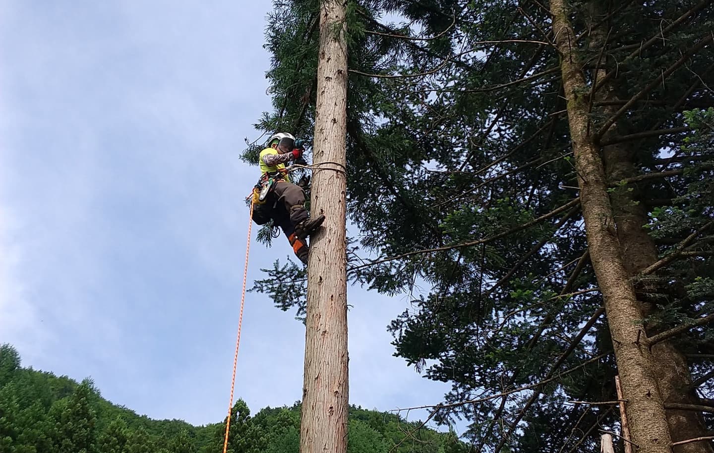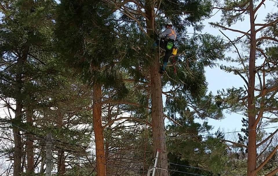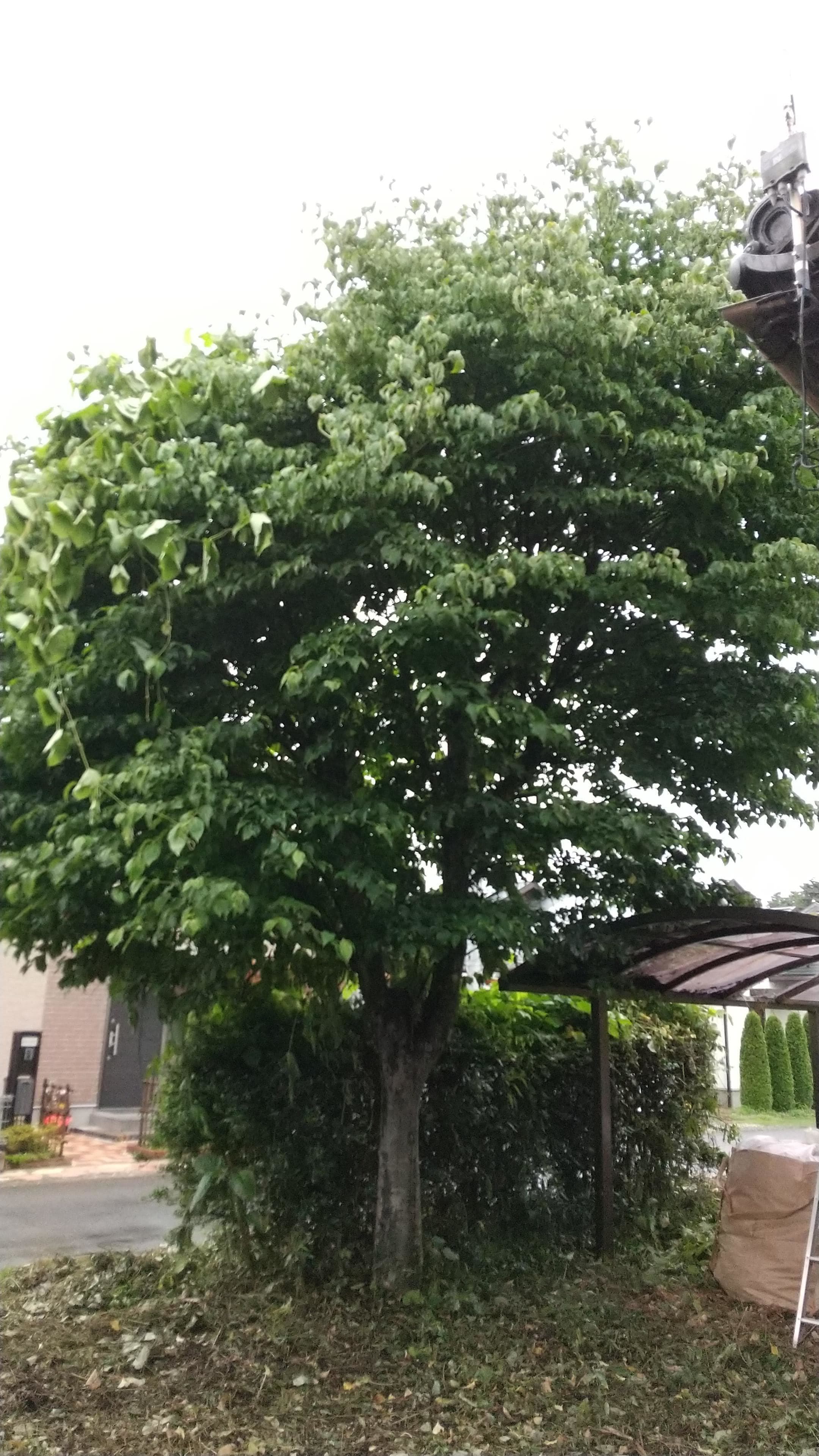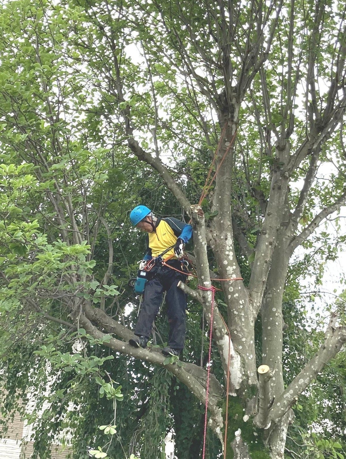 初めての手伝いの特殊伐採。空き家の庭に生えてる木の伐採。3~4mまで刻めば倒せるスペースがあったので、枝を落とすのも主幹を倒すのも楽だった。