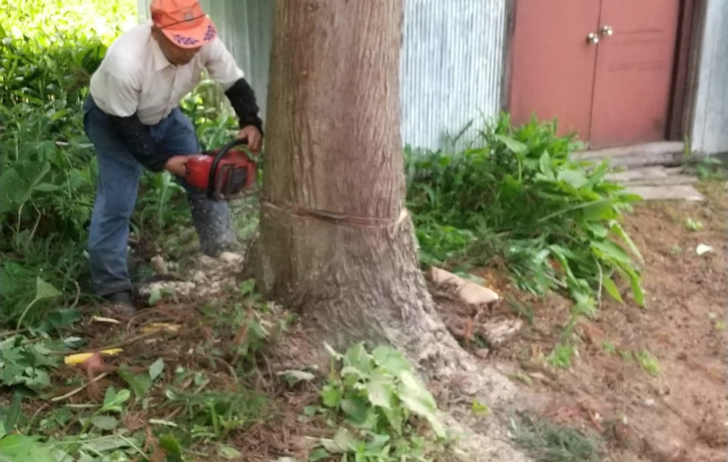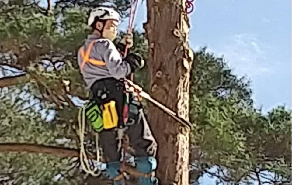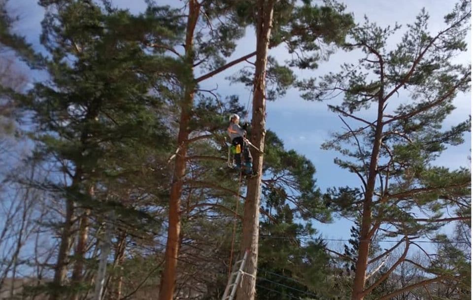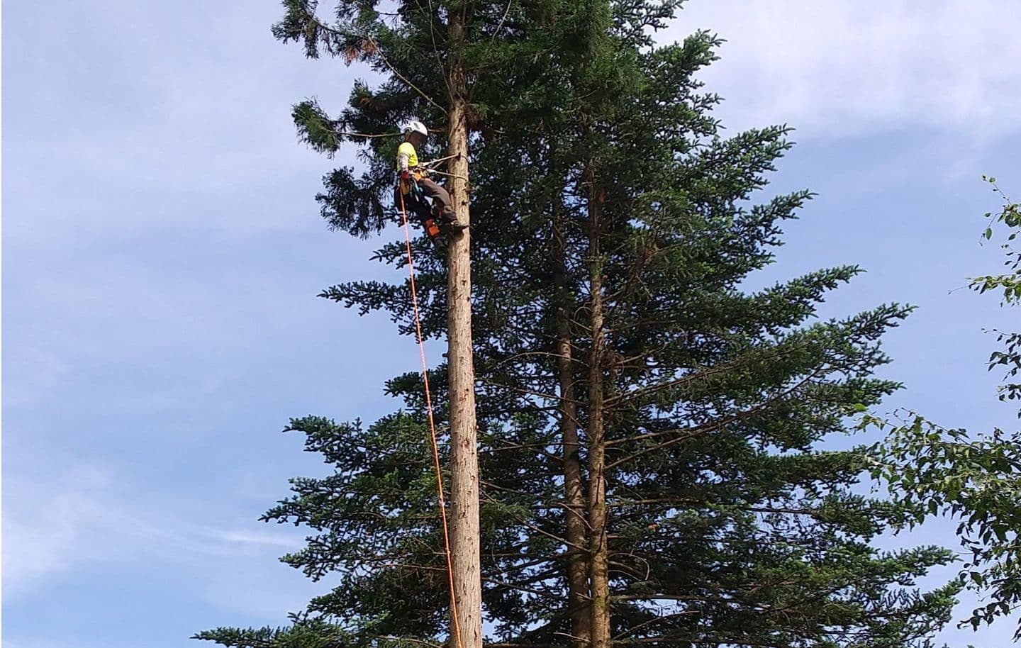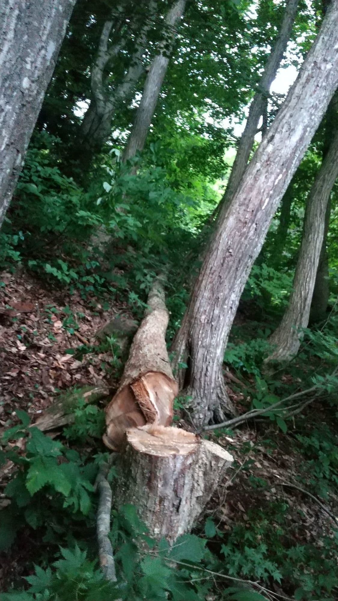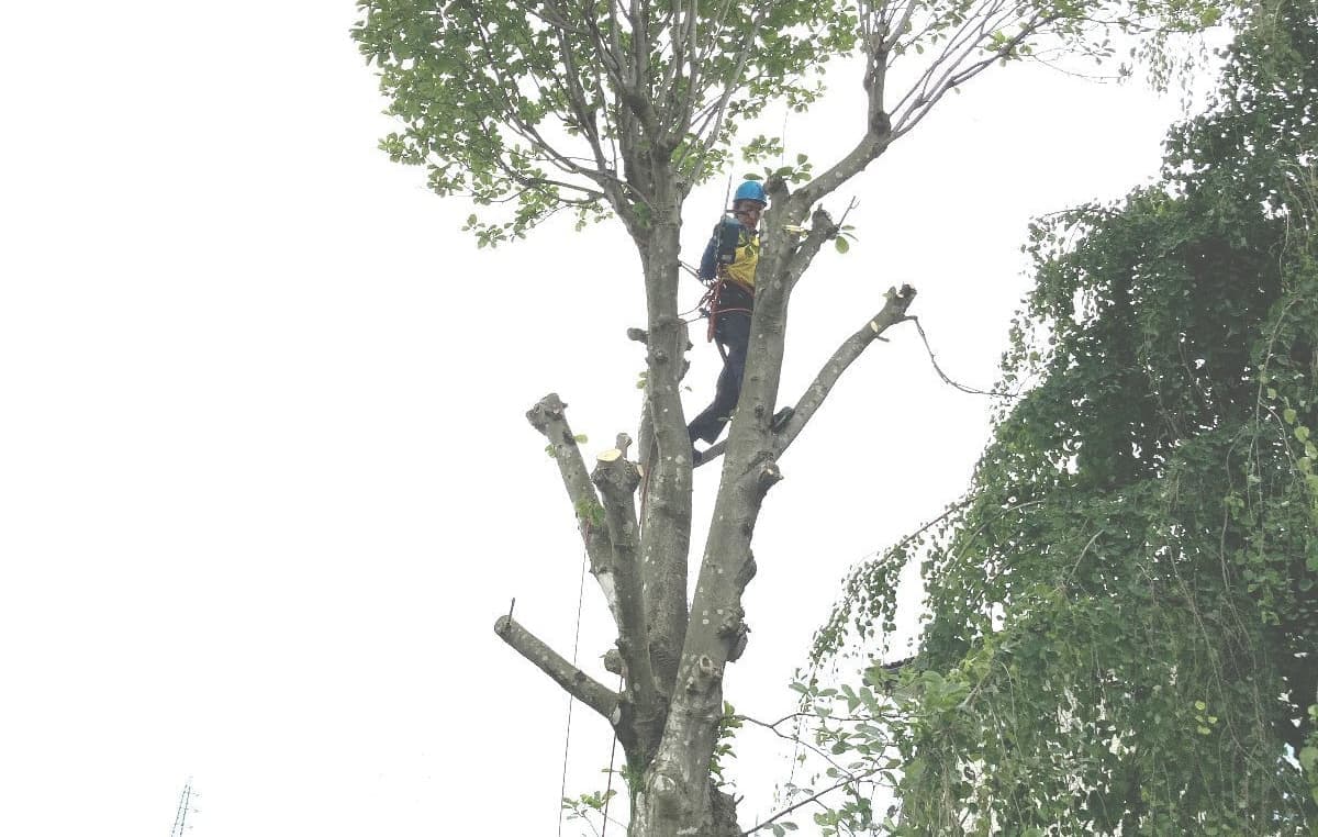 初めての手伝いの特殊伐採。空き家の庭に生えてる木の伐採。3~4mまで刻めば倒せるスペースがあったので、枝を落とすのも主幹を倒すのも楽だった。